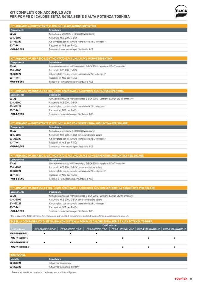 TABELLA COMPATIBILITÀ DI ESTIA BOX CON SISTEMI A POMPA DI CALORE ESTIA SERIE 5 ALTA POTENZA TOSHIBA