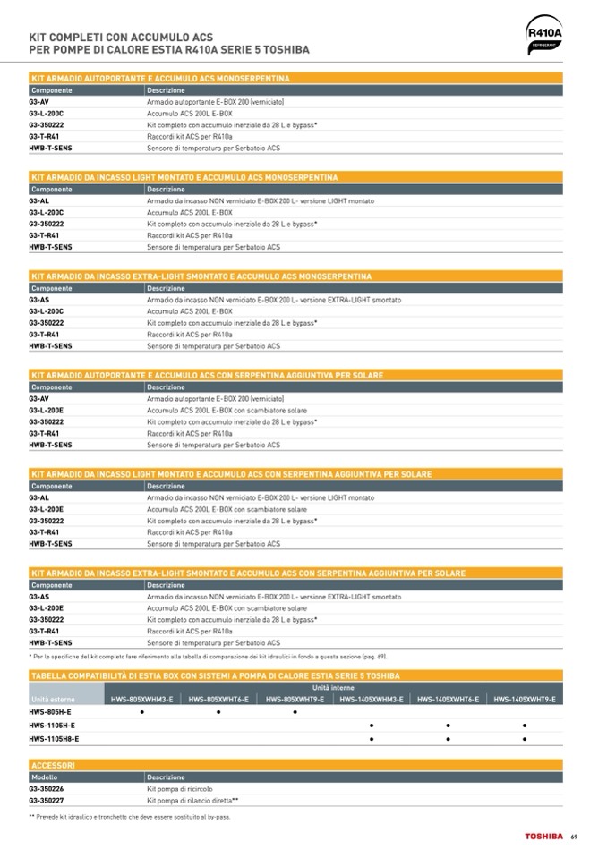 TABELLA COMPATIBILITÀ DI ESTIA BOX CON SISTEMI A POMPA DI CALORE ESTIA SERIE 5 TOSHIBA