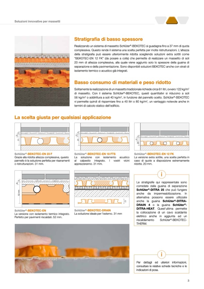 separazione e della pavimentazione. Sono disponibili soluzioni BEKOTEC anche con strati di