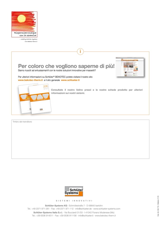 Schlüter-Systems Italia S.r.l. · Via Bucciardi 31/33 · I-41042 Fiorano Modenese (Mo)