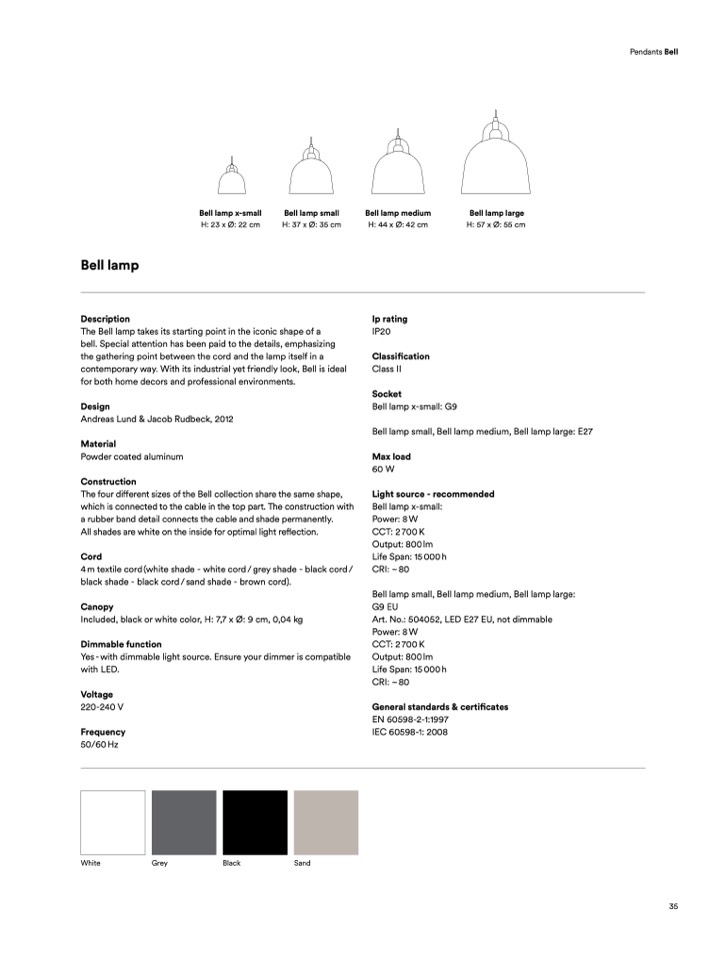 Bell lamp small, Bell lamp medium, Bell lamp large: E27