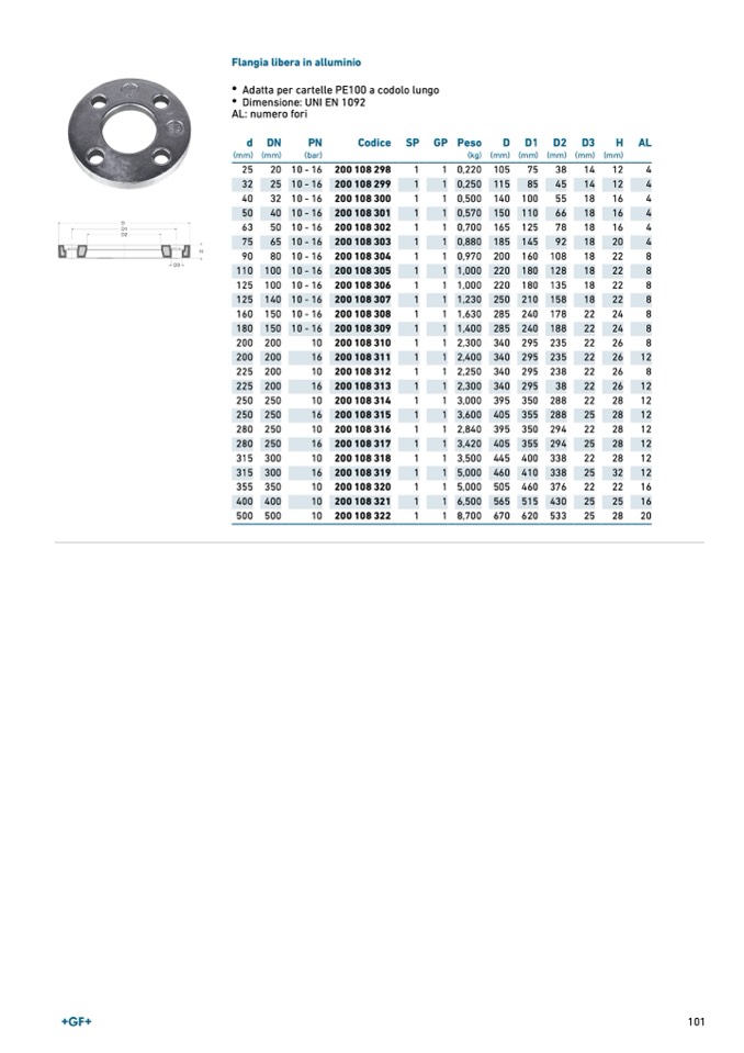 Flangia libera in alluminio