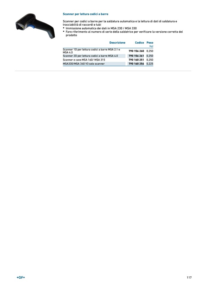 Scanner per codici a barre per la saldatura automatica e la lettura di dati di saldatura e