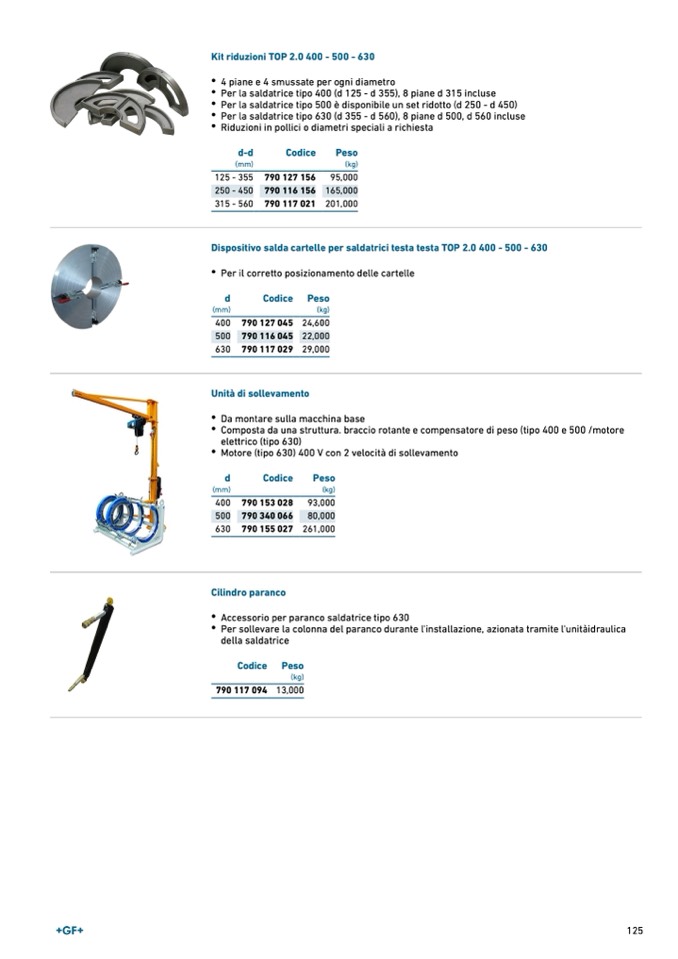 Per la saldatrice tipo 500 è disponibile un set ridotto (d 250 - d 450)