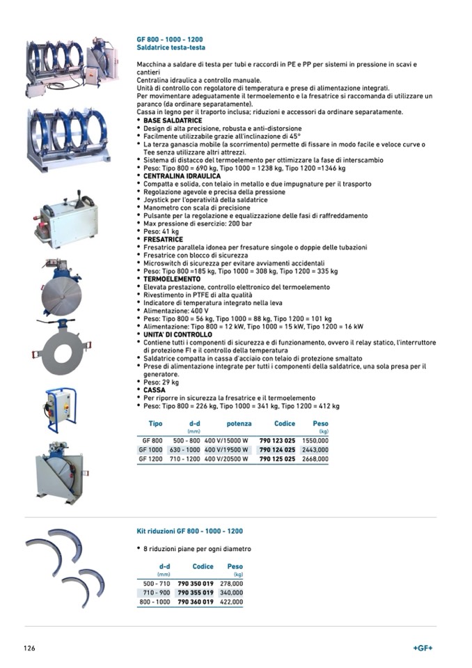 Alimentazione: Tipo 800 = 12 kW, Tipo 1000 = 15 kW, Tipo 1200 = 16 kW