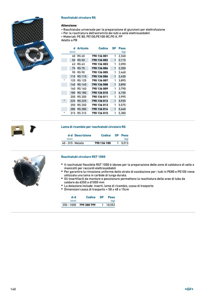 • Per la raschiatura dell'estremità dei tubi e selle elettrosaldabili