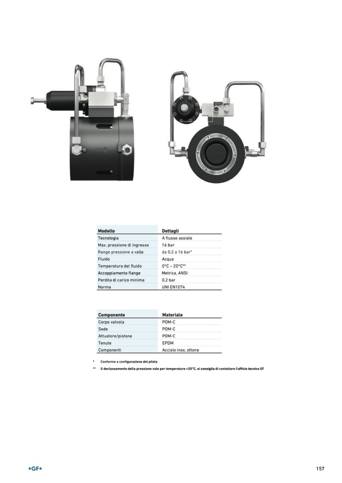 Il declassamento della pressione vale per temperature >20°C, si consiglia di contattare l'ufficio tecnico GF
