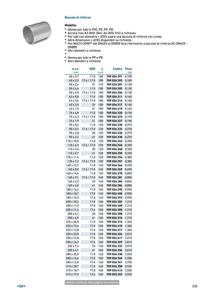 Per MULTI/JOINT® dal DN625 al DN800 fare riferimento a boccole di rinforzo MJ DN625 -