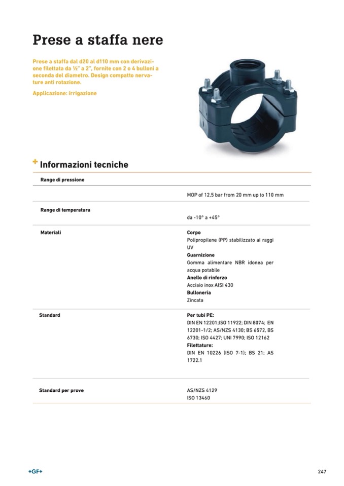 Prese a staffa dal d20 al d110 mm con derivazi-