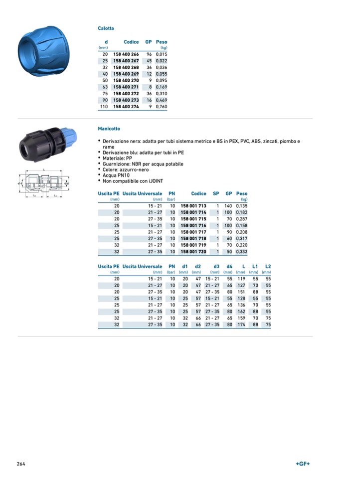 Derivazione blu: adatta per tubi in PE