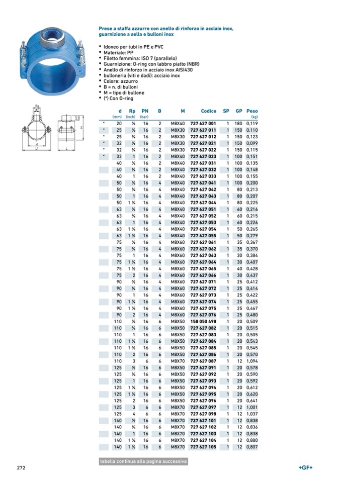 Prese a staffa azzurre con anello di rinforzo in acciaio inox,