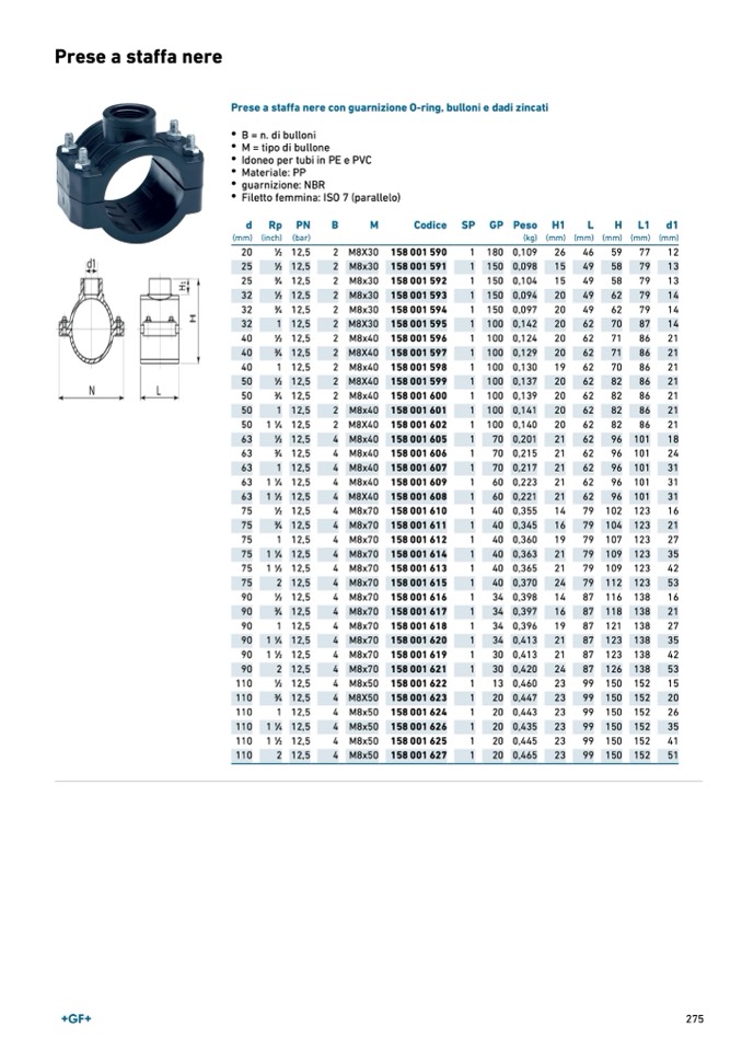 Prese a staffa nere con guarnizione O-ring, bulloni e dadi zincati