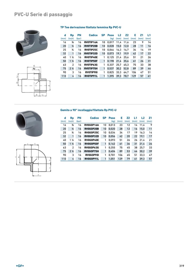 Gomito a 90° incollaggio/filettato Rp PVC-U