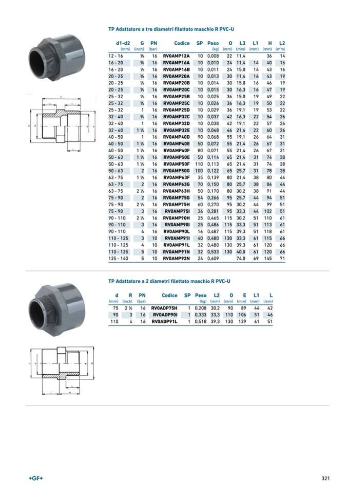 TP Adattatore a 2 diametri filettato maschio R PVC-U
