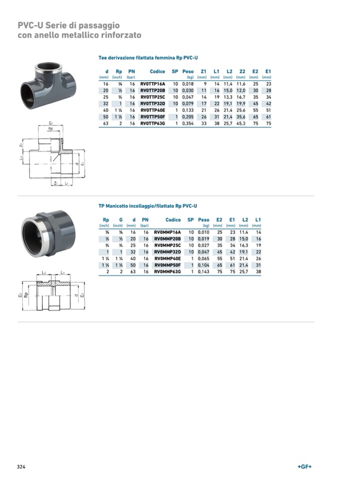 TP Manicotto incollaggio/filettato Rp PVC-U