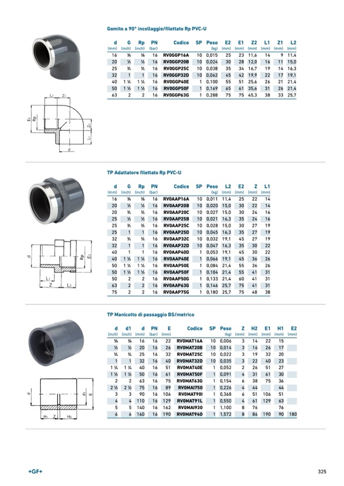 Gomito a 90° incollaggio/filettato Rp PVC-U