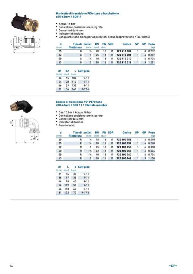 Gas 10 bar / Acqua 16 bar