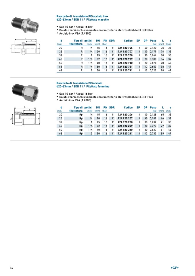 d20-63mm / SDR 11 / Filettato femmina