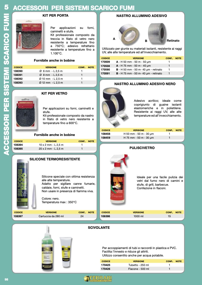 Adatto per sigillare canne fumarie,