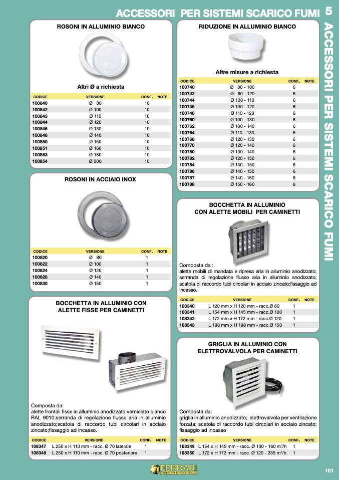 griglia in alluminio anodizzato; elettrovalvola per ventilazione