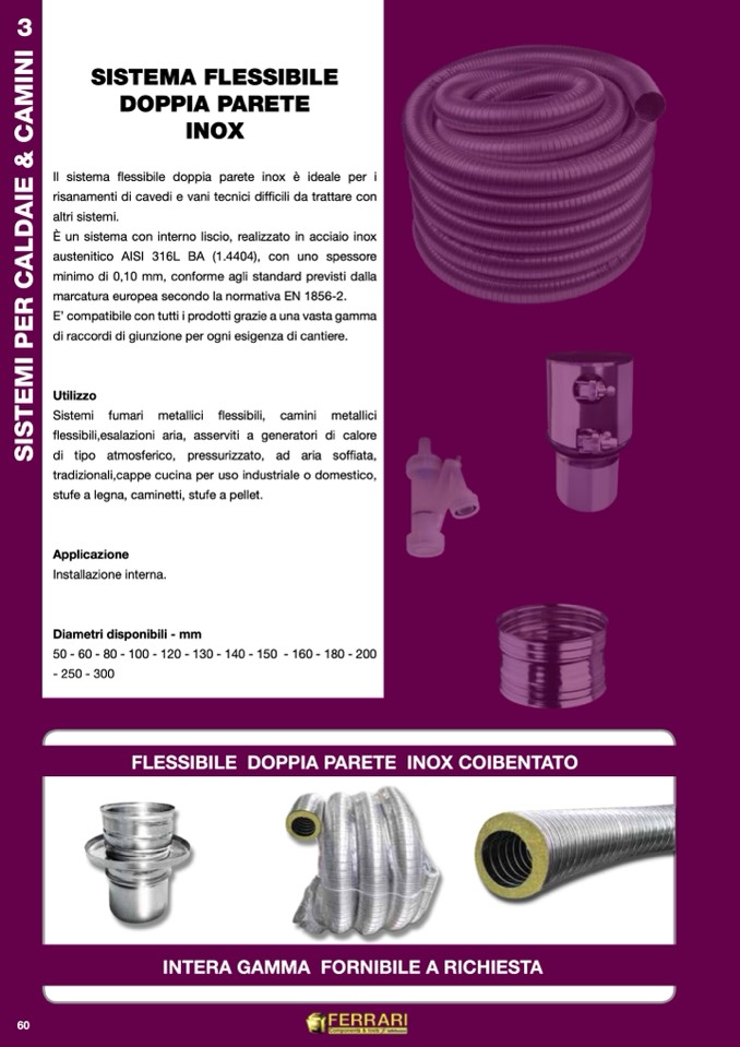Il sistema flessibile doppia parete inox è ideale per i