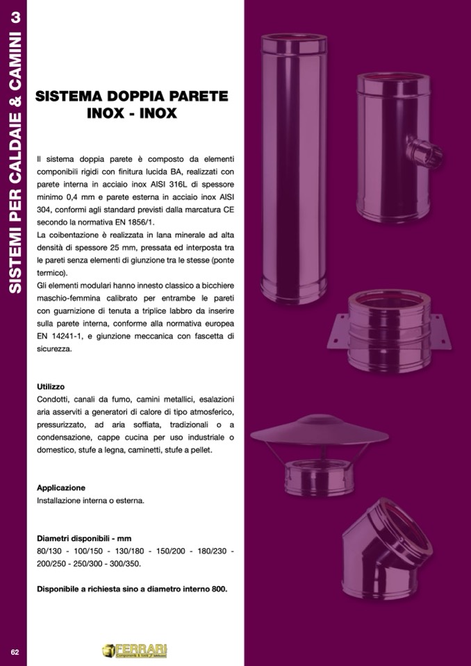 minimo 0,4 mm e parete esterna in acciaio inox AISI