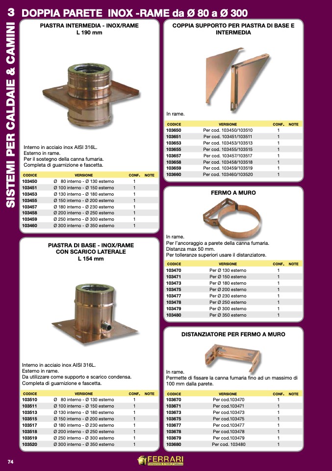 PIASTRA DI BASE - INOX/RAME