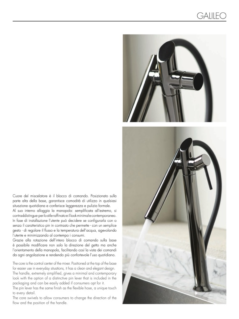 The pin lever has the same finish as the flexible hose, a unique touch