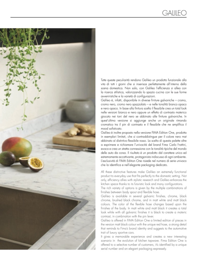 scenario in the evolution of kitchen tapware. Fima Edition One is