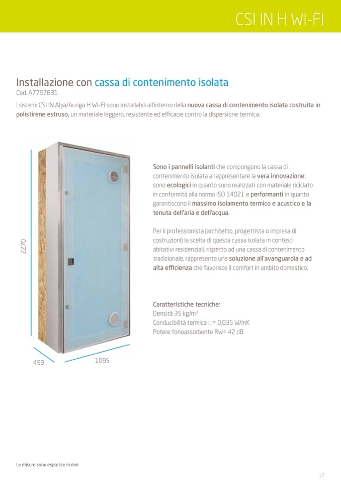 I sistemi CSI IN Alya/Auriga H WI-FI sono installabili all’interno della nuova cassa di contenimento isolata costruita in