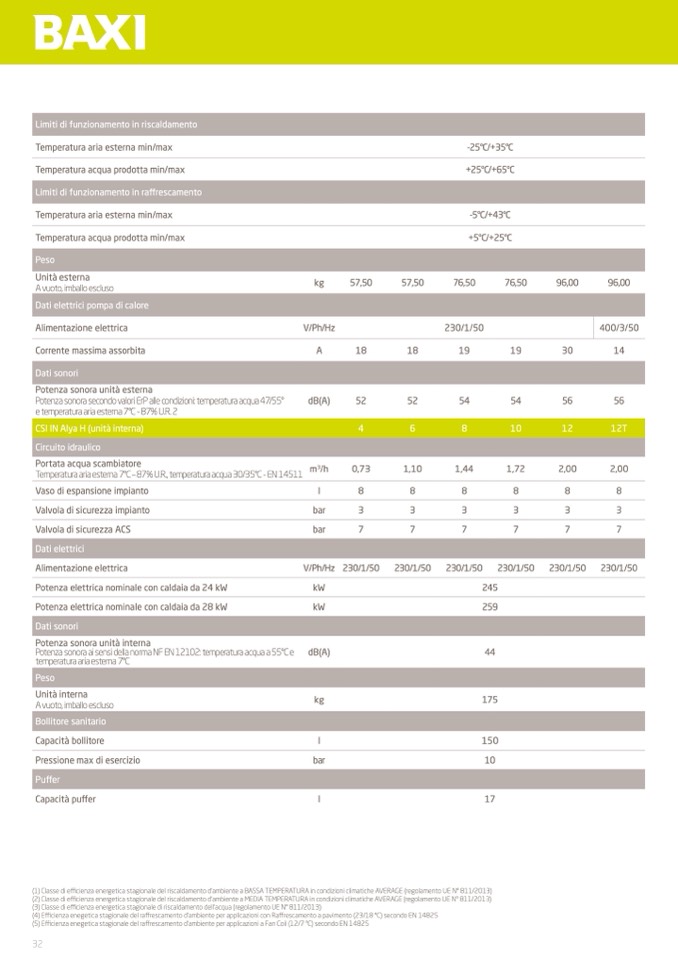 (1) Classe di efficienza energetica stagionale del riscaldamento d’ambiente a BASSA TEMPERATURA in condizioni climatiche AVERAGE (regolamento UE N° 811/2013)