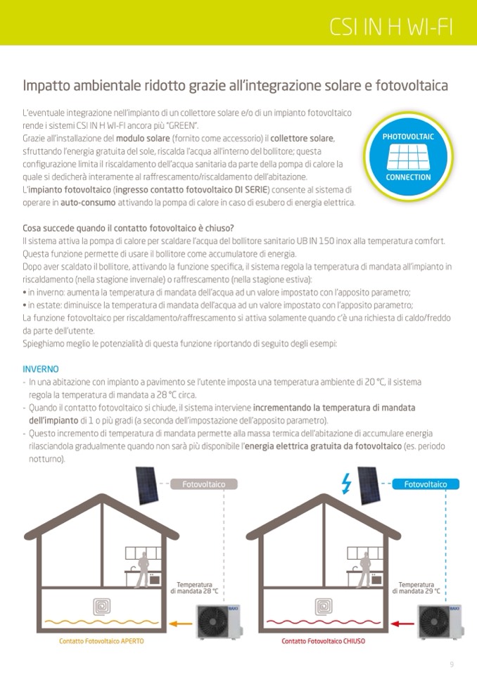 - Quando il contatto fotovoltaico si chiude, il sistema interviene incrementando la temperatura di mandata