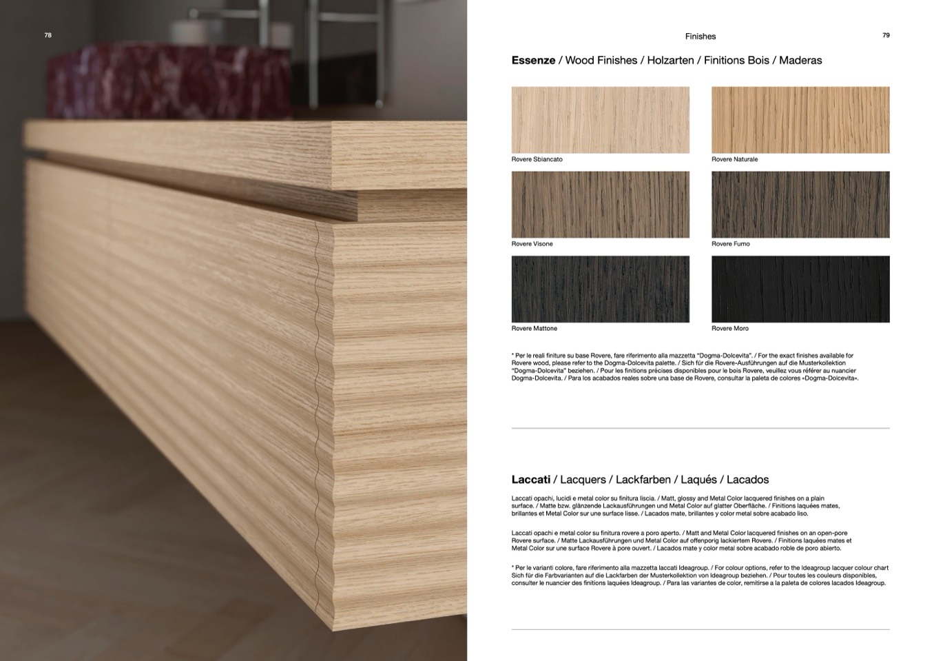 Rovere wood, please refer to the Dogma-Dolcevita palette. / Sich für die Rovere-Ausführungen auf die Musterkollektion