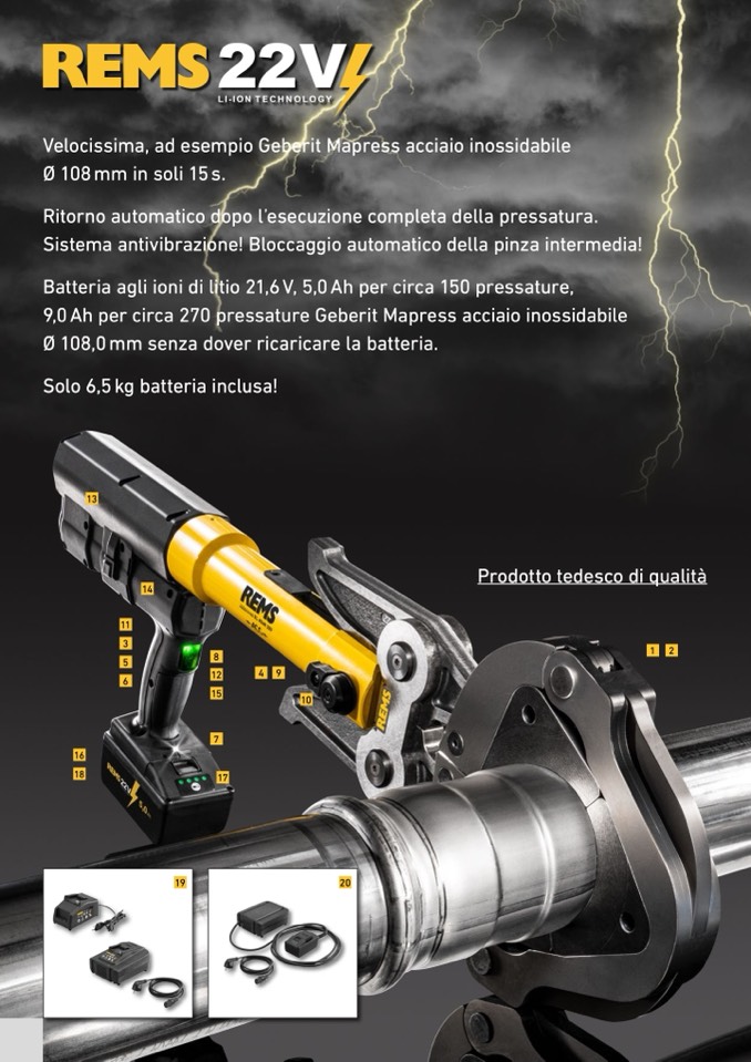 9,0 Ah per circa 270 pressature Geberit Mapress acciaio inossidabile
