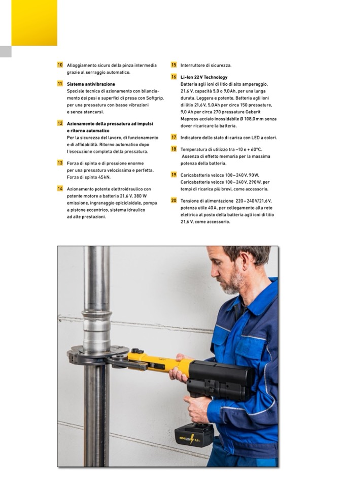 di litio 21,6 V, 5,0 Ah per circa 150 pressature,