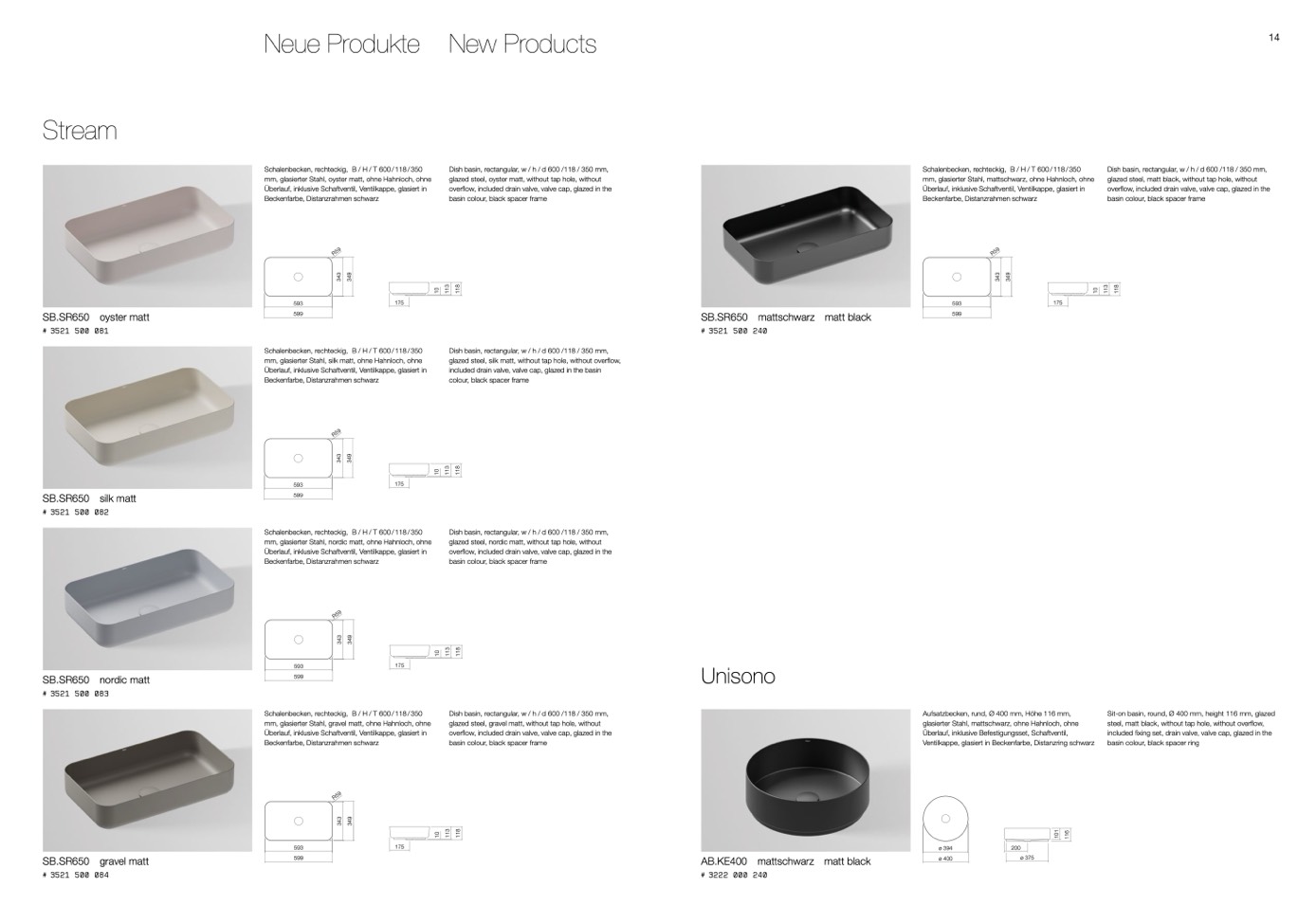 mm, glasierter Stahl, nordic matt, ohne Hahnloch, ohne