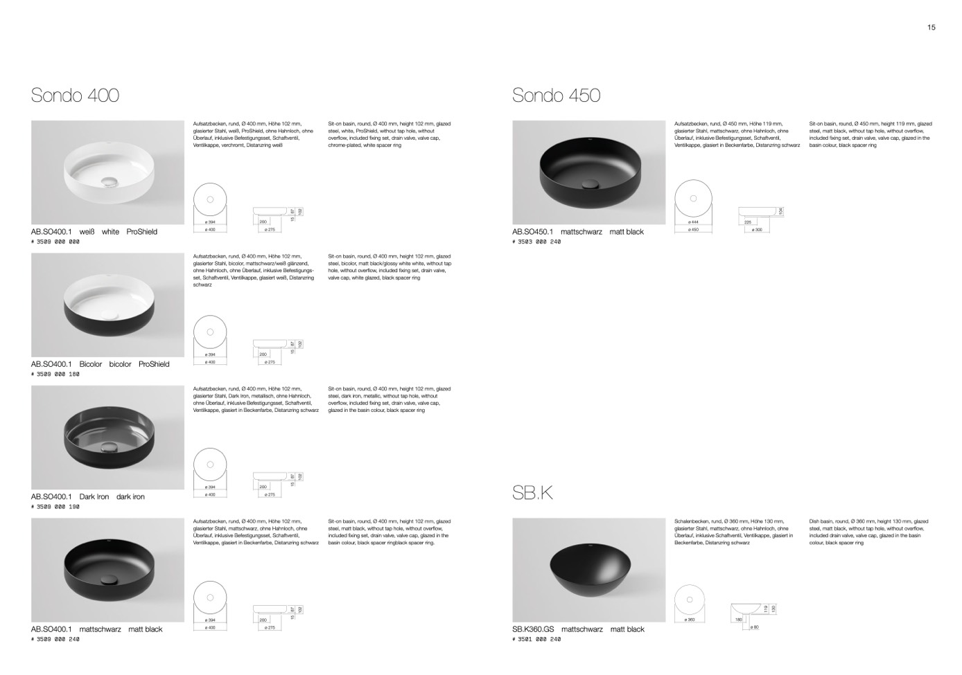 Aufsatzbecken, rund, Ø 400 mm, Höhe 102 mm,