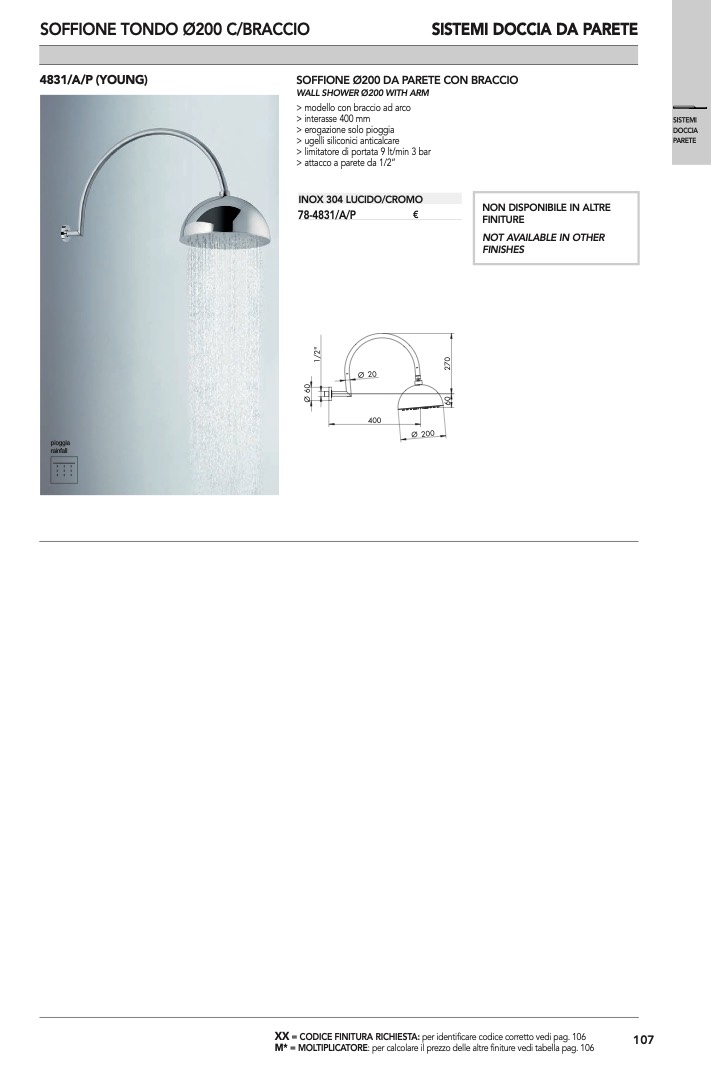 WALL SHOWER Ø200 WITH ARM