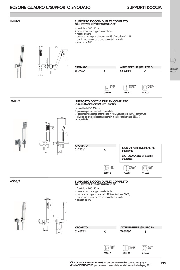 diverse da cromo doccetta quadra in metallo (ordinare art. 6503/1)