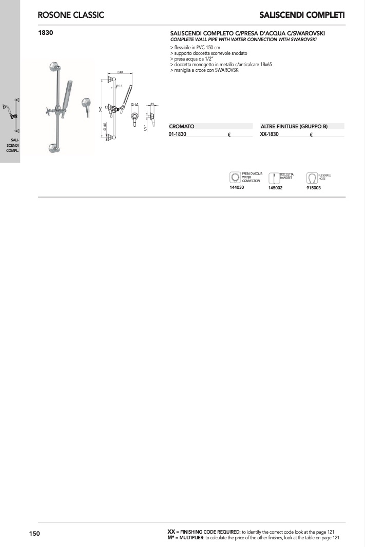 COMPLETE WALL PIPE WITH WATER CONNECTION WITH SWAROVSKI