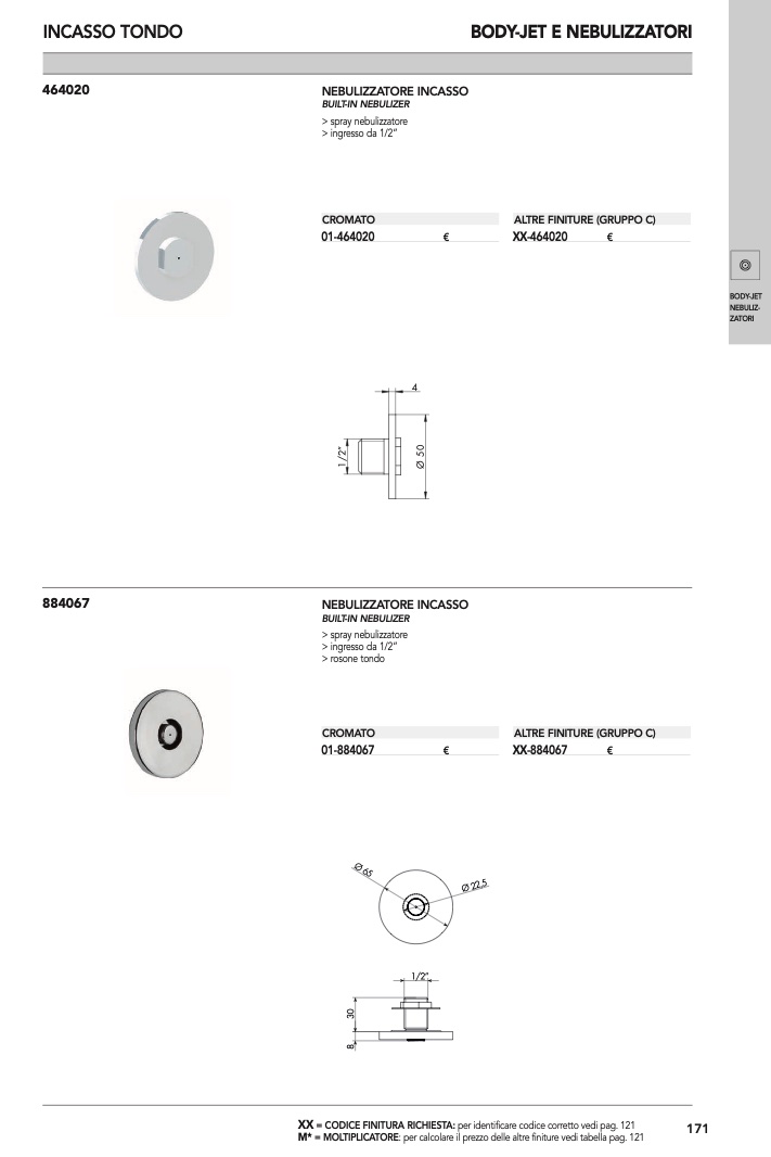 : per calcolare il prezzo delle altre finiture vedi tabella pag. 121