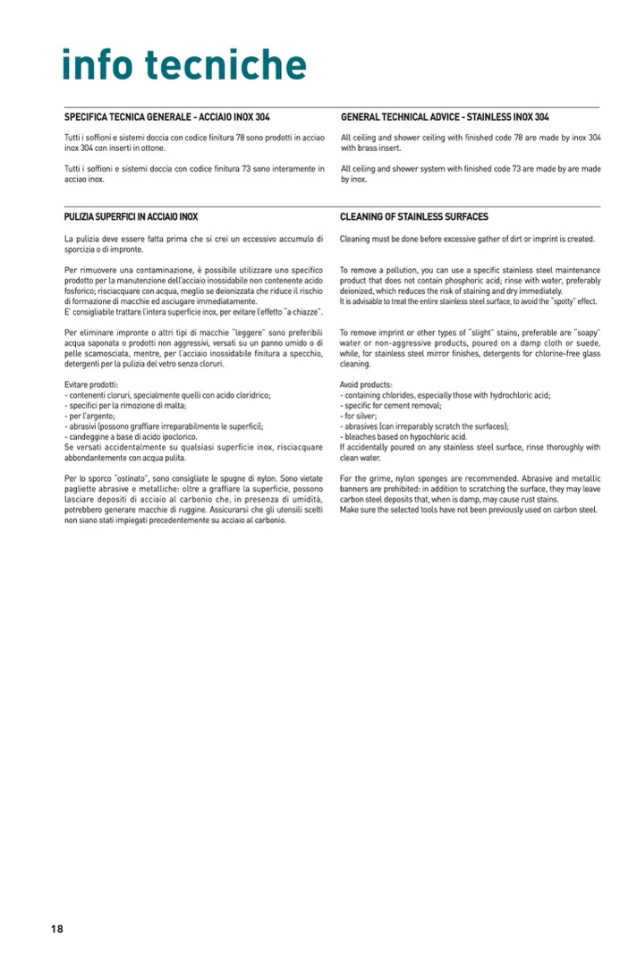 Tutti i soffioni e sistemi doccia con codice finitura 78 sono prodotti in acciao