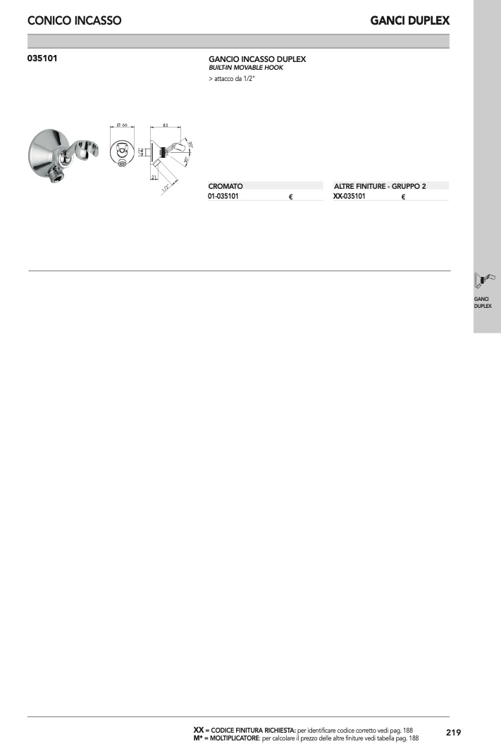 : per calcolare il prezzo delle altre finiture vedi tabella pag. 188