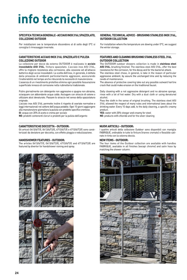 The OUTDOOR outdoor showers collection is made in stainless steel
