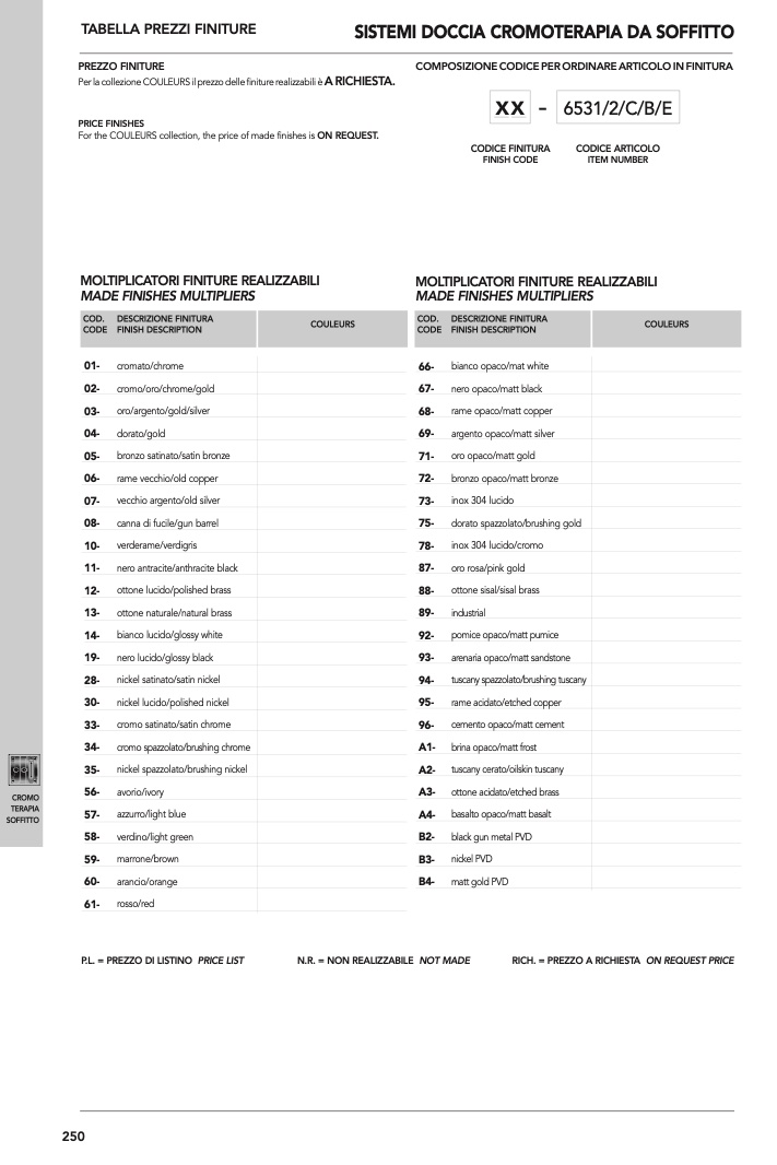 COD. DESCRIZIONE FINITURA