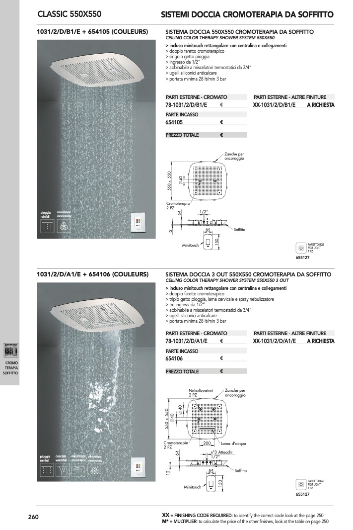SISTEMA DOCCIA 550X550 CROMOTERAPIA DA SOFFITTO