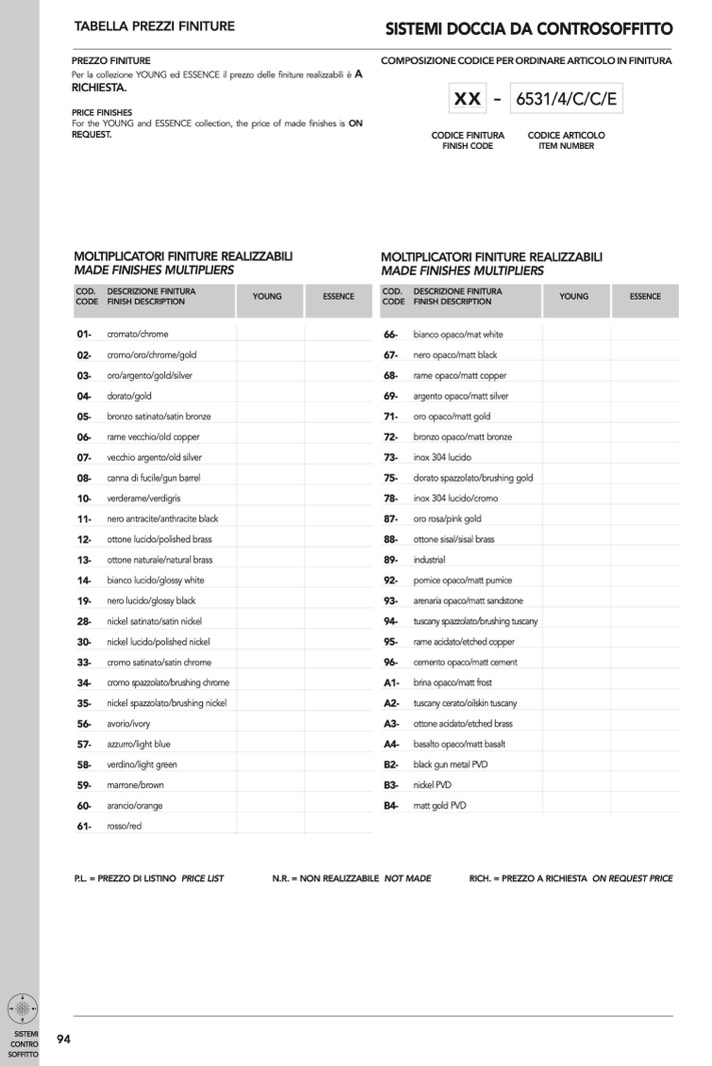For the YOUNG and ESSENCE collection, the price of made finishes is ON