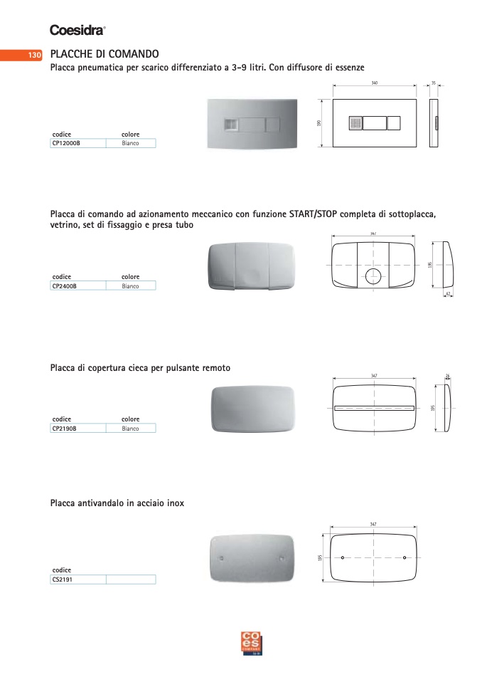 Placca pneumatica per scarico differenziato a 3-9 litri. Con diffusore di essenze