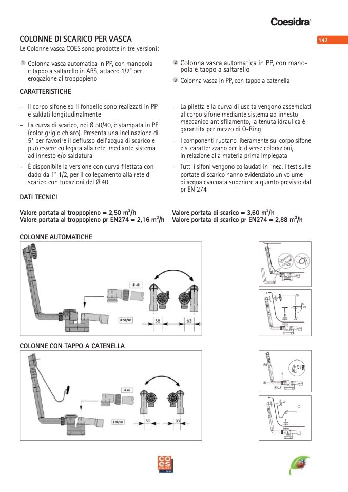Le Colonne vasca COES sono prodotte in tre versioni: