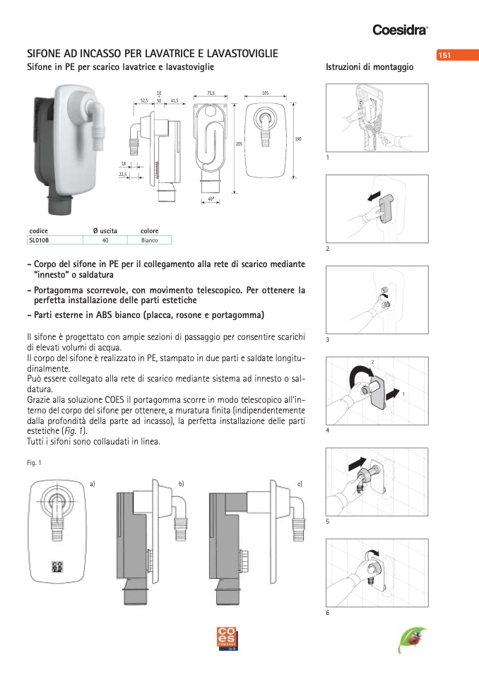 terno del corpo del sifone per ottenere, a muratura finita (indipendentemente
